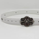 Inspired by Chrome Hearts design, this faux leather belt brings edgy style to your wardrobe. Crafted from quality synthetic material, it delivers the aesthetic you want at an accessible price point. Made in China.